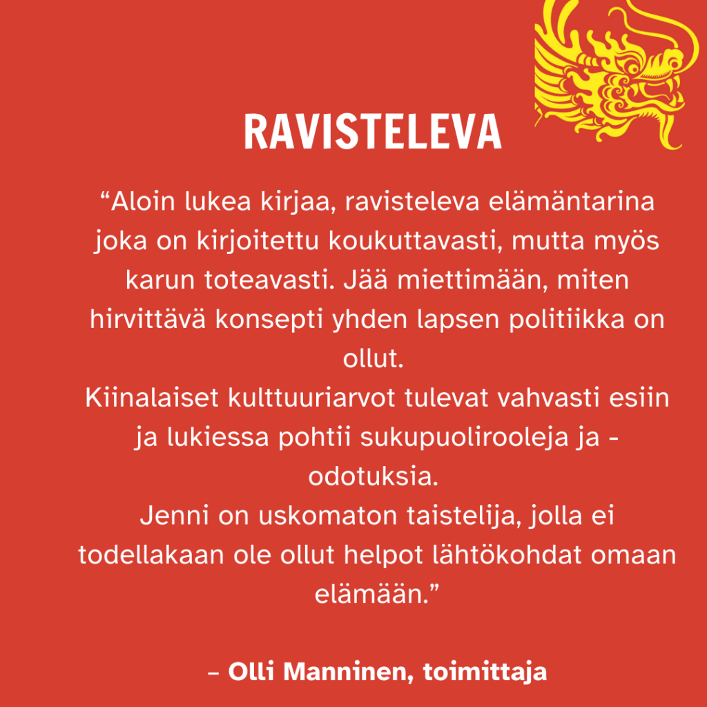 Keskustelussa olivat mukana mm. HS emerita-päätoimittaja, Naisten Pankin aktiivi Reetta Meriläinen, kirjan kirjoittaja Vaula Norrena, kirjan päähenkilö Jenni Chen-Ye ja Littana-äänikirjan lukija näyttelijä Satu Paavola.