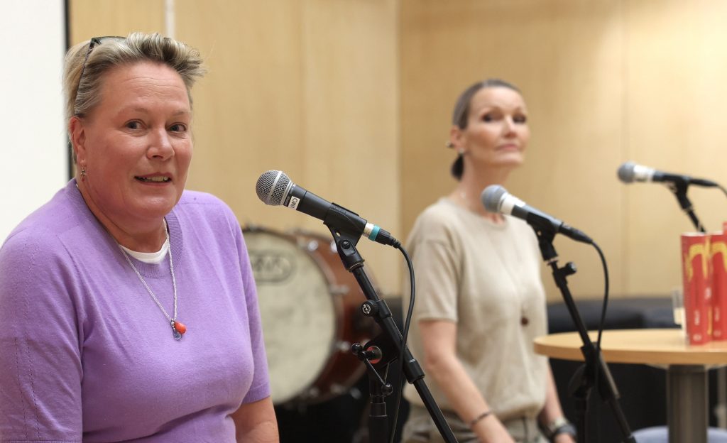 @Teoskustantamon Nina Paavolainen lausui tervetuliaissanat ja sen jälkeen HS päätoimittaja emerita Reetta Meriläinen alkoi haastatella meitä omalla lempeällä tavallaan.