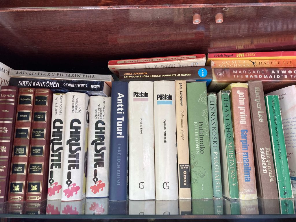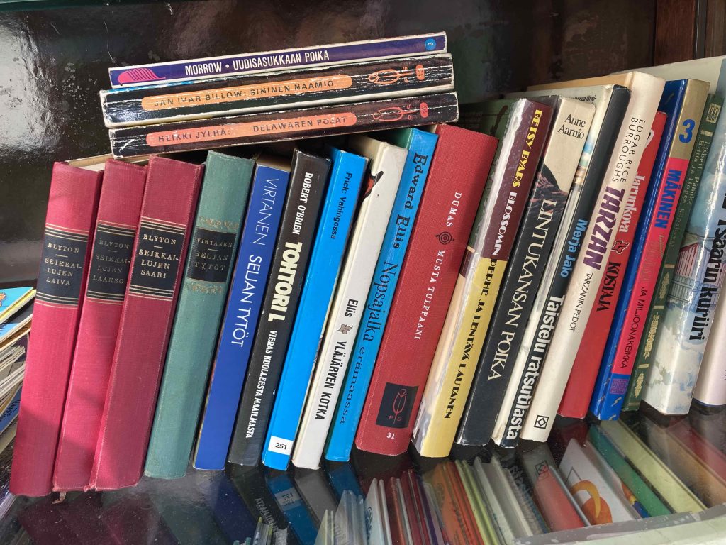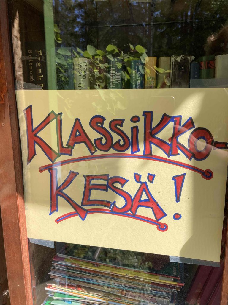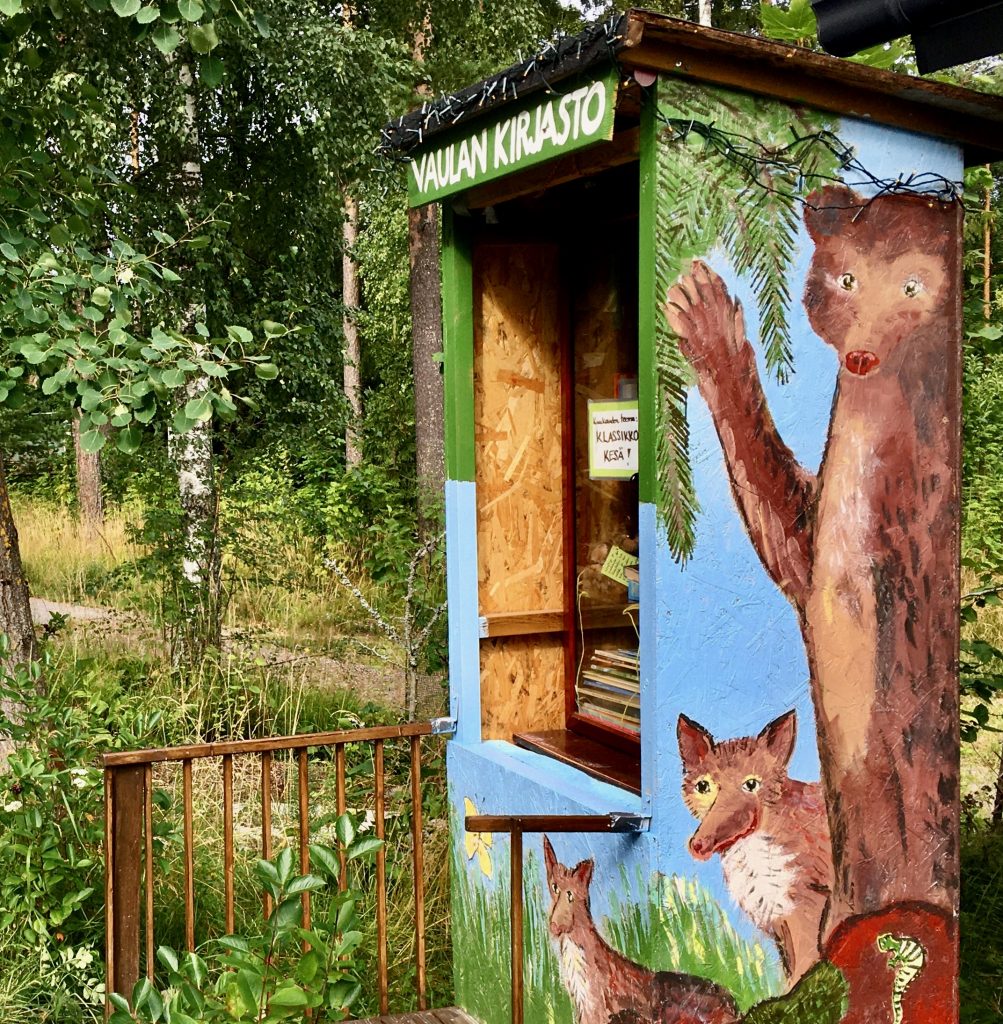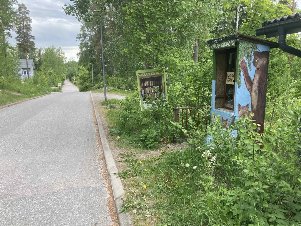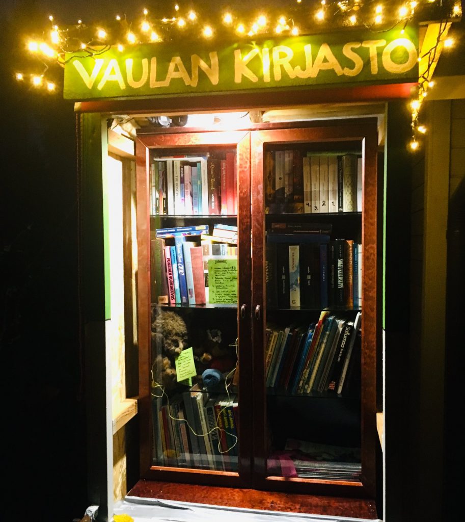 Kun täytin 60 vuotta, rakensin itselleni syntymäpäivälahjaksi kierrätyskirjaston kotikadulleni Vuohirinteelle.